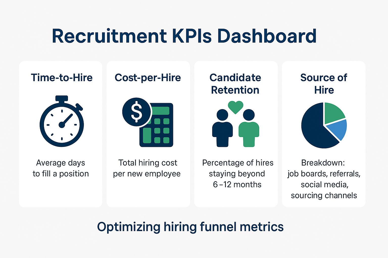 Without recruitment metrics and hiring funnel metrics, the ability to measure success is zero. Tracking key performance indicators such as source effectiveness, time-to-hire, and candidate retention is crucial for employers. Regular reporting is recommended by the marketing of practice’s loading needs to be synchronized with business objectives.